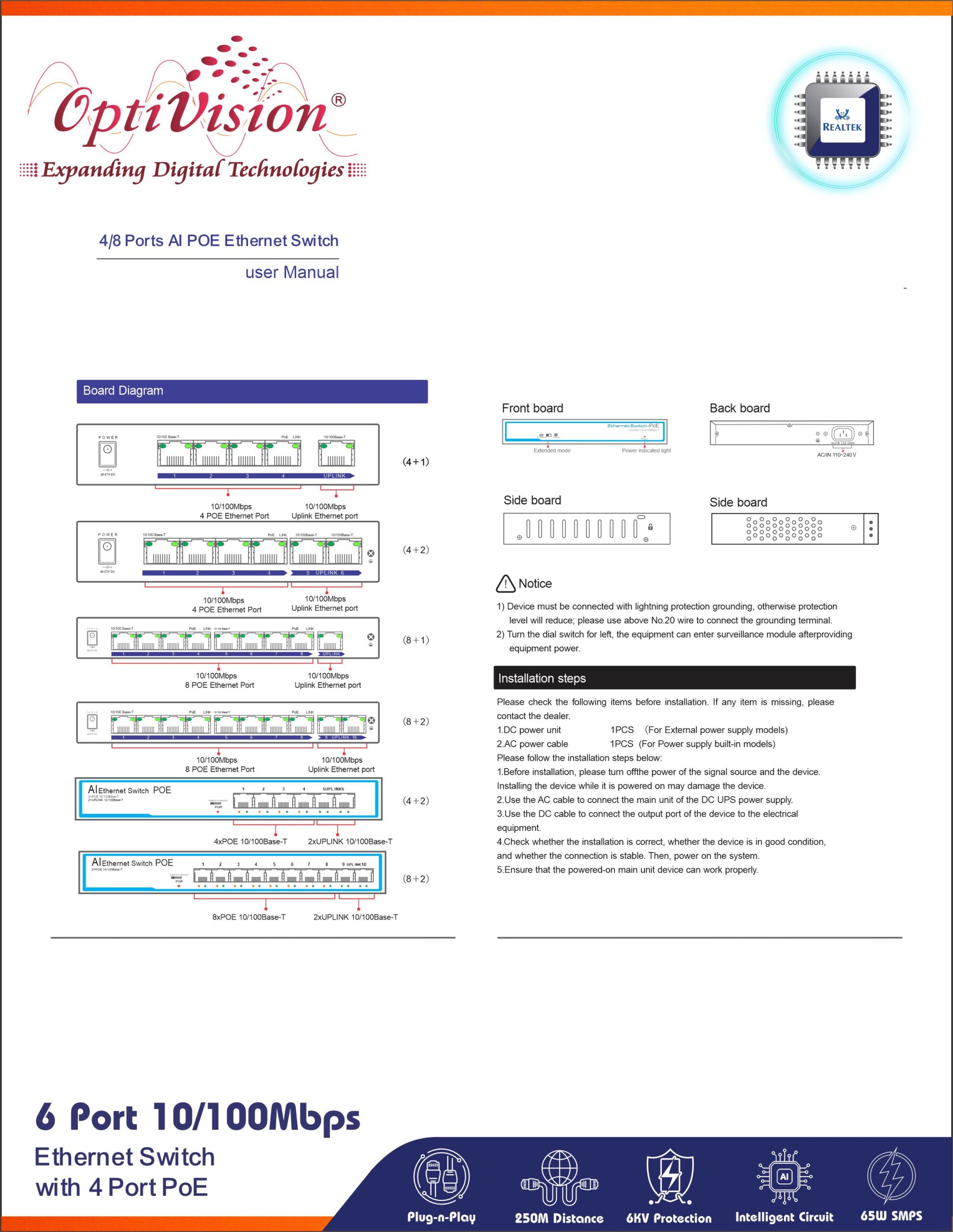 1.1 4+2FE PoE Switch – Technical Specifications